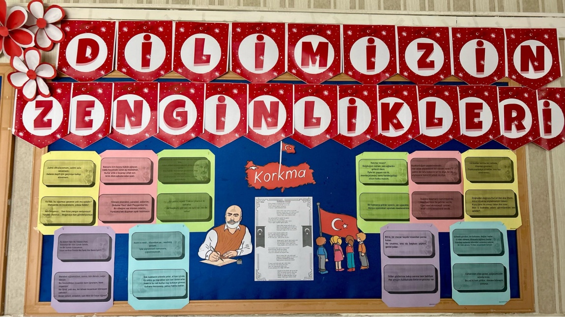 Okulumuzda, Dilimizin Zenginlikleri Projesi kapsamında gerçekleştirilen “Mehmet Âkif Ersoy ve Türkçe” etkinlikleri çerçevesinde okul panosu hazırlandı. Panoda, Türk edebiyatının önemli isimlerinden biri olan Mehmet Âkif Ersoy’un eserlerinden seçilen şiirlerde bölümler sergilendi. Etkinlik, öğrencilerimize Mehmet Âkif Ersoy’un edebi mirasını daha yakından tanıma fırsatı sundu.