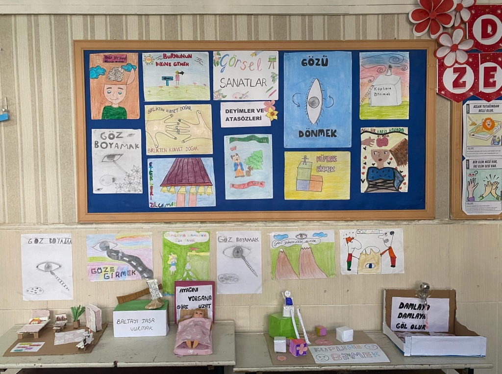 Sergide, öğrenciler tarafından atasözlerinden ve deyimlerden ilham alınarak oluşturulmuş üç boyutlu eserler, resimler yer aldı. Okulumuzdaki öğrenciler, sergide atasözlerinin, deyimlerin gücünü ve derinliğini sanatla ifade eden eserleri inceleme fırsatı buldu.